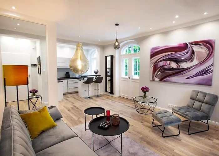 Dieses Apartment verfügt unter anderem über eine komplette Küche mit einem Herd und einem Geschirrspüler. Das Wohnperle Apartment Estelle ist in einer Entfernung von nur 5 Gehminuten von der nächstgelegenen Bushaltestelle Jaegerpark. Zu den weiteren Annehmlichkeiten gehört eine Terrasse.